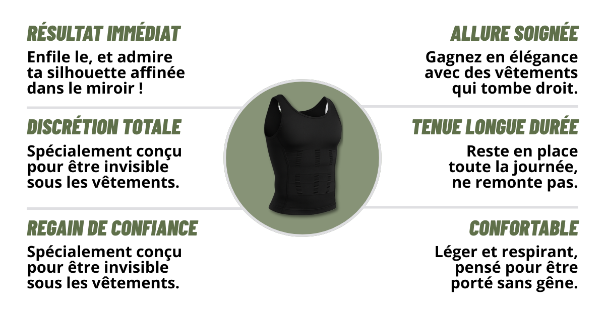 Résultat : moins de bourrelets, un torse plus ferme, une silhouette affinée immédiatement – sans effort.